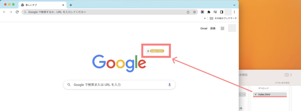 次に作成したファイルをウェブブラウザにドラック&ドロップします。